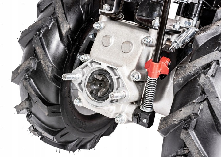 Koła Transportowe: Duże pompowane koła ułatwiają transport maszyny i jej manewrowanie, co jest szczególnie ważne podczas pracy na nierównym terenie.