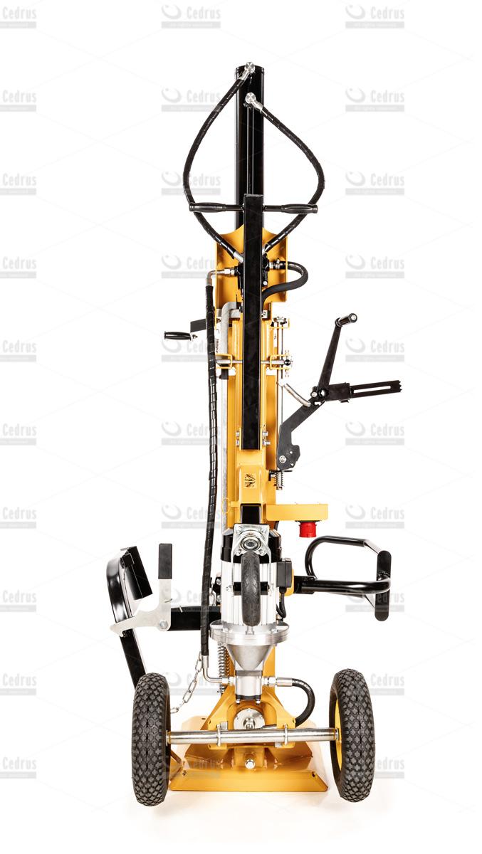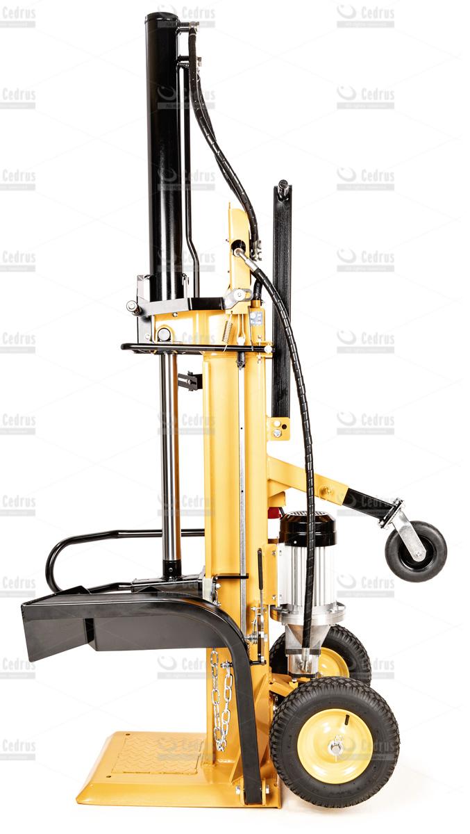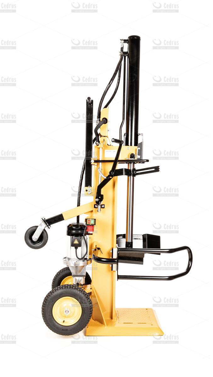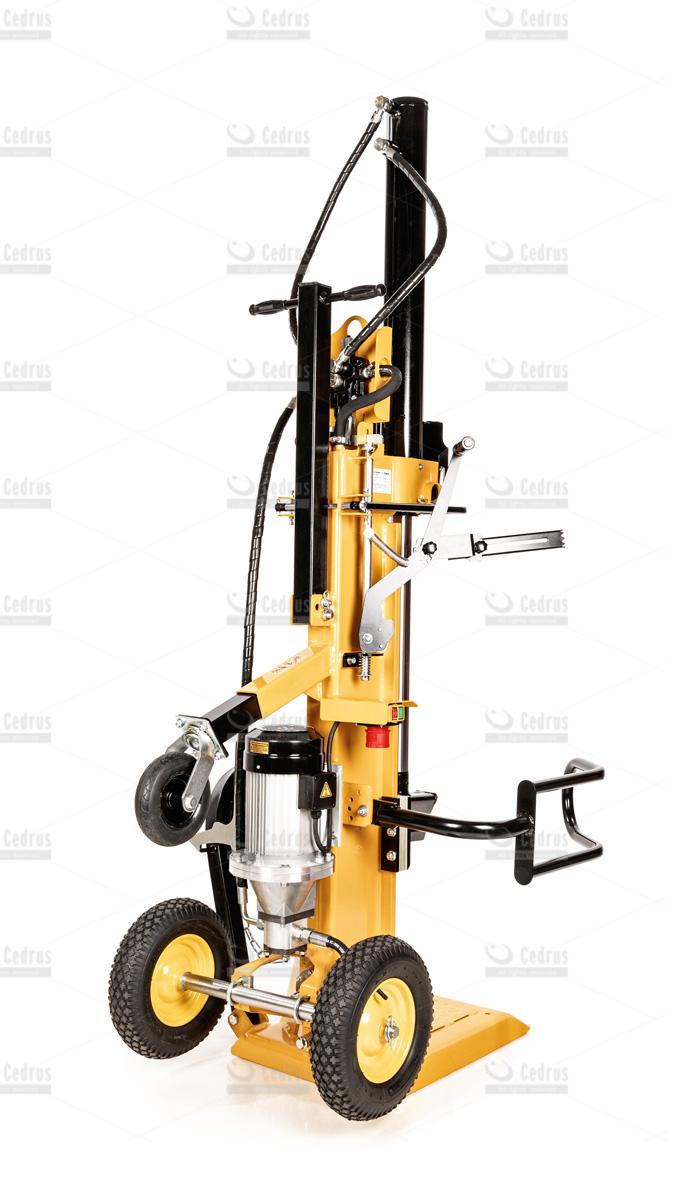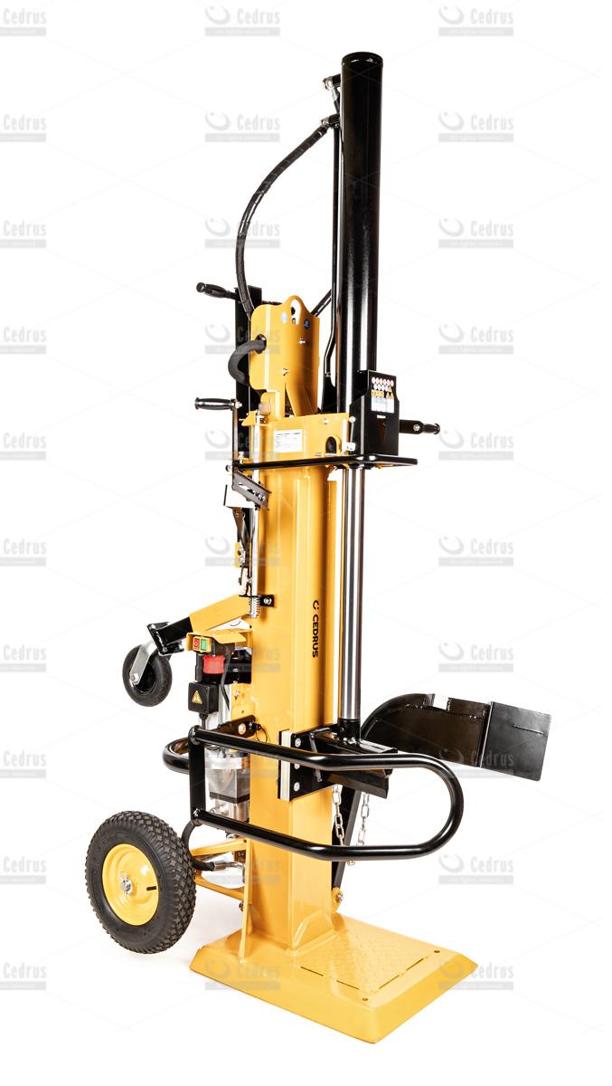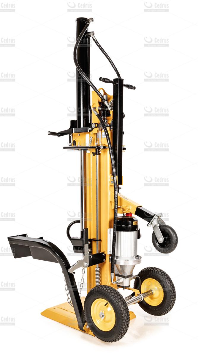 Łuparka Cedrus LS10V charakteryzuje się zwartą, pionową budową. Pompowane koła, znacząco ułatwiają jej transport i właściwe ustawienie. Pracę ułatwia również dwustopniowa regulacja prędkości pracy (6 oraz 2,9m/min). Istnieje również możliwość montażu klina, który rozłupuje drewno na cztery części.