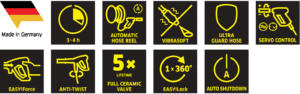 | Servo Control 750–1100 l/h (regulacja ilości i ciśnienia wody bezpośrednio na ręcznym pistolecie spryskującym) |