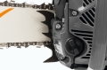 Hamulec bezpieczeństwa natychmiastowo zatrzymuje łańcuch w przypadku odbicia, chroniąc operatora przed urazem