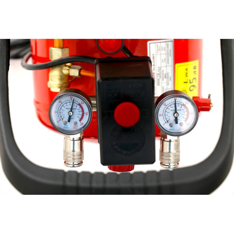 Ergonomiczny i Ekonomiczny: KD400 charakteryzuje się innowacyjnym mechanizmem regulacji ciśnienia w reduktorze, co zapewnia precyzyjną kontrolę nad ciśnieniem powietrza. Dwa manometry umieszczone w wygodnym miejscu, umożliwiają szybki i łatwy odczyt parametrów, bez potrzeby schylania się. Dzięki szerokiemu ożebrowaniu i efektywnemu chłodzeniu powietrzem, kompresor odprowadza ciepło sprawnie, zapewniając niskie zużycie energii przy wysokiej wydajności.