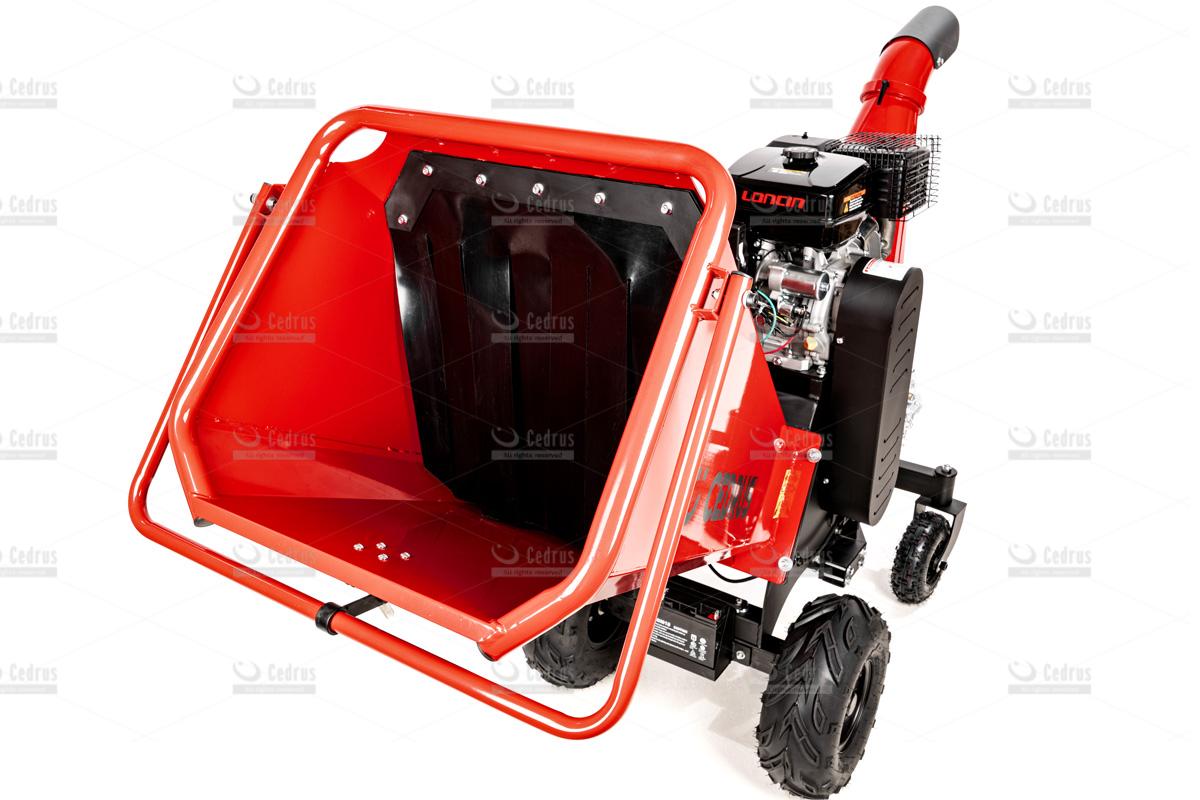 Rozdrabniacz spalinowy Cedrus RB04 PRO-E to wydajna maszyna przeznaczona do pracy z gałęziami o średnicy aż do 15 cm. Wyposażona została w wydajny silnik Loncin o pojemności 420cm³ z żeliwną tuleją cylindra, tranzystorowym zapłonem oraz elektrycznym rozrusznikiem. Wytrzymała konstrukcja urządzania roboczego, które składa się z bębna z dwoma nożami roboczymi o wymiarach 300mm, pozwala na rozdrobnienie w ciągu godziny do 7 m³ gałęzi. Silnik napędza układ roboczy za pomocą dwóch pasków napędowych. Wał napędowy jest łożyskowany i wyposażony w kalamitki ułatwiające konserwację maszyny. Rozdrabniacz można w łatwy sposób transportować, dzięki dużym kołom oraz zaczepowi samochodowemu. Nad bezpieczeństwem operatora czuwają wyłączniki, które w razie niebezpieczeństwa wyłączą silnik, a co za tym idzie zatrzymają bęben roboczy.