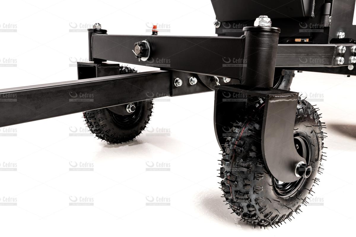 - łatwa transport maszyny, dzięki pompowanym kołom oraz zaczepowi samochodowemu,